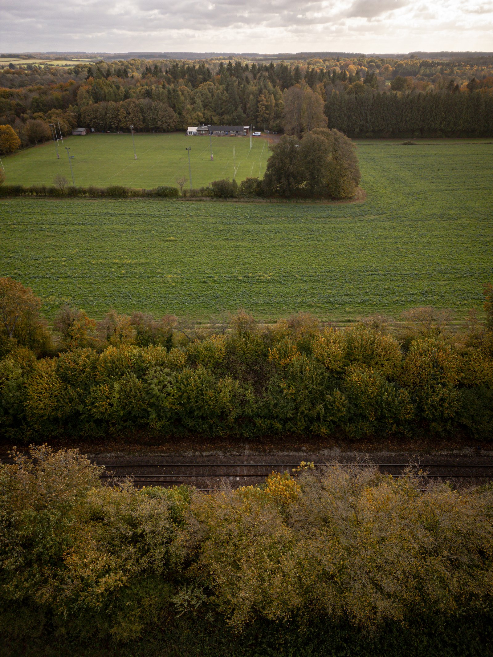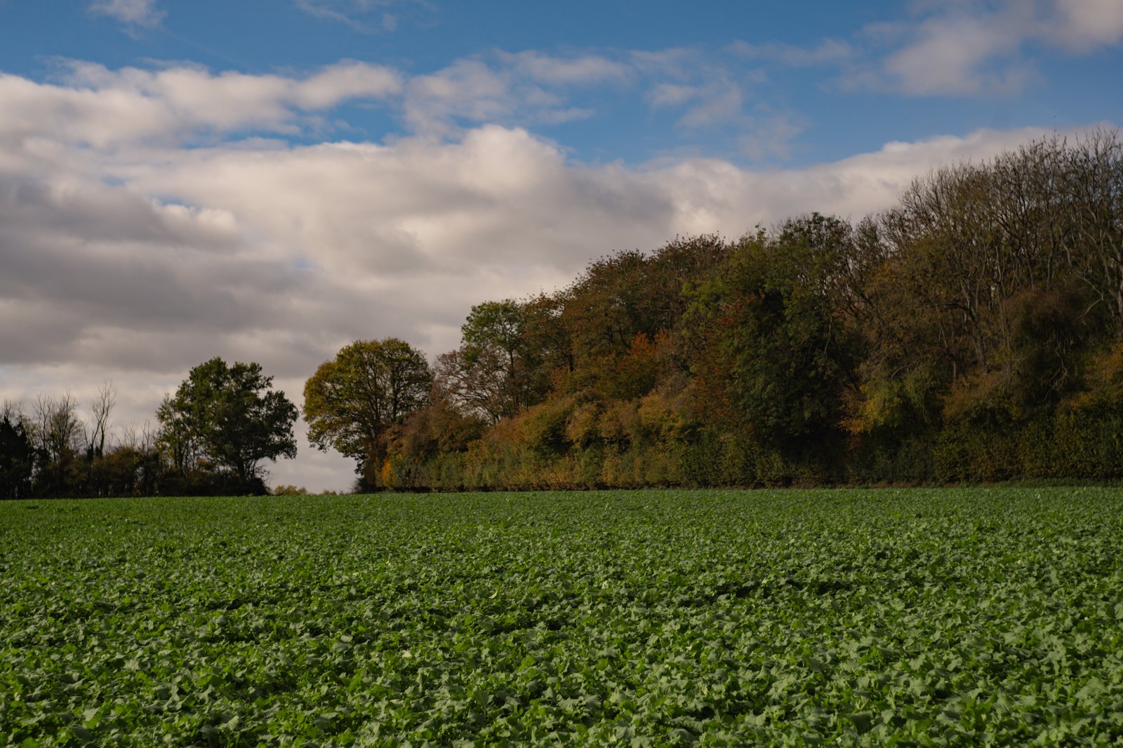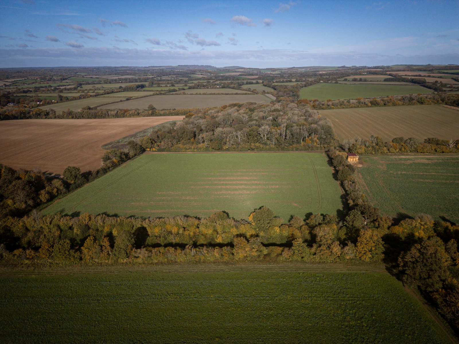 The railway cutting is located halfway between the bridges at Watch Lane, in Freefolk, and Northington Farm. Trespassing onto railway property is a criminal offence, whilst the fields both side of the track are privately owned. During October 2025 I attempted to launch my drone from the footpath running from Efrafa to Northington Farm, but strong winds meant the little thing was buffeted around and unable to do anything but hover. I had given up and was heading back to my vehicle, when for the second time in a year I encountered Jackie, the farmer, out walking her dog. Once again she was kind enough to give me permission to enter her fields. So I headed west along the field boundaries, north of the railway line.