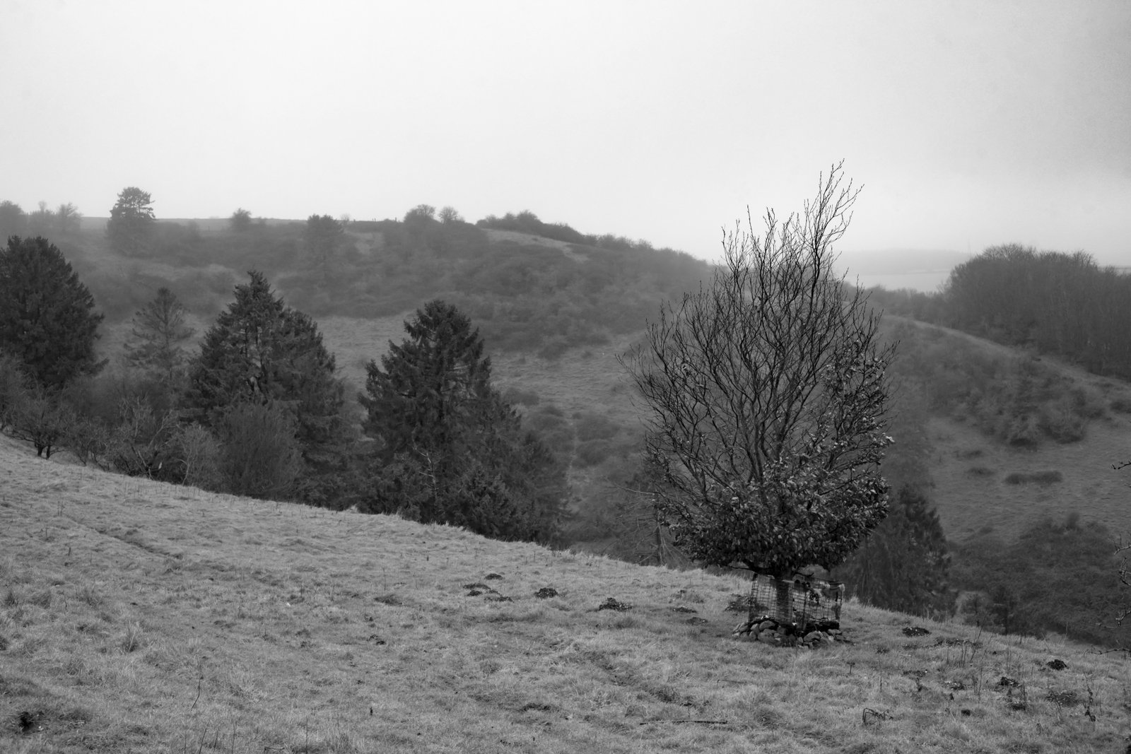 Rather than make my usual trek to Watership Down from the Cole Henley to Sydmonton crossroads lane, I decided to instead park up in the layby on White Hill, above Kingsclere. I usually avoid this location as it can get quite busy at times, but as the early February morning in question was cold, misty and wet, I decided to stick to the established track than runs over Cannon Heath Down and onto Watership Down.