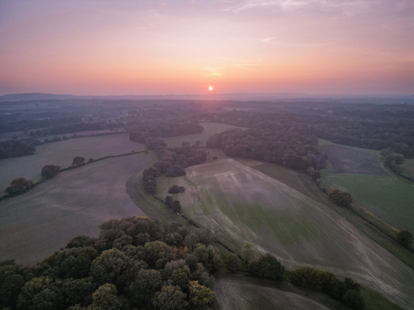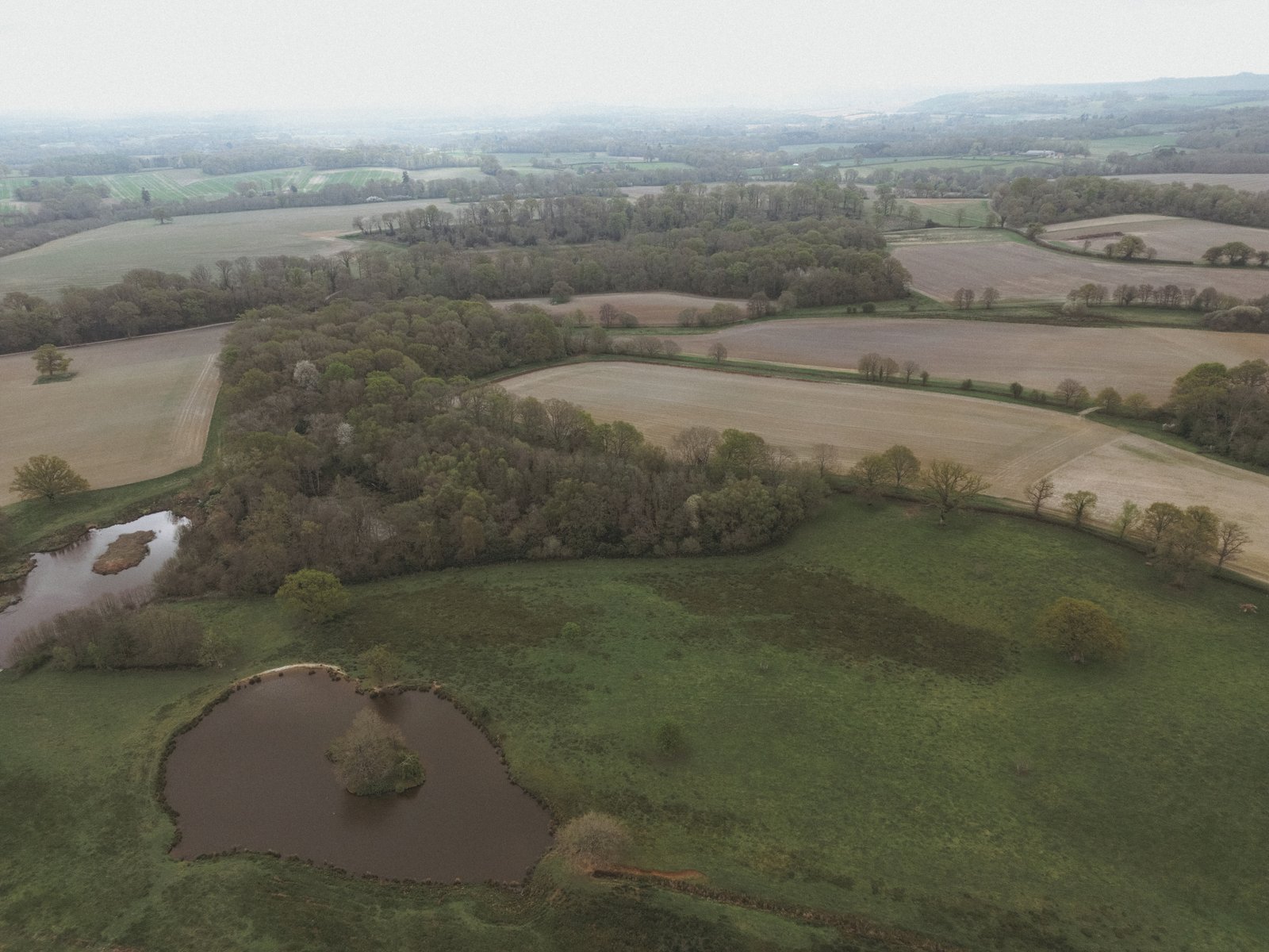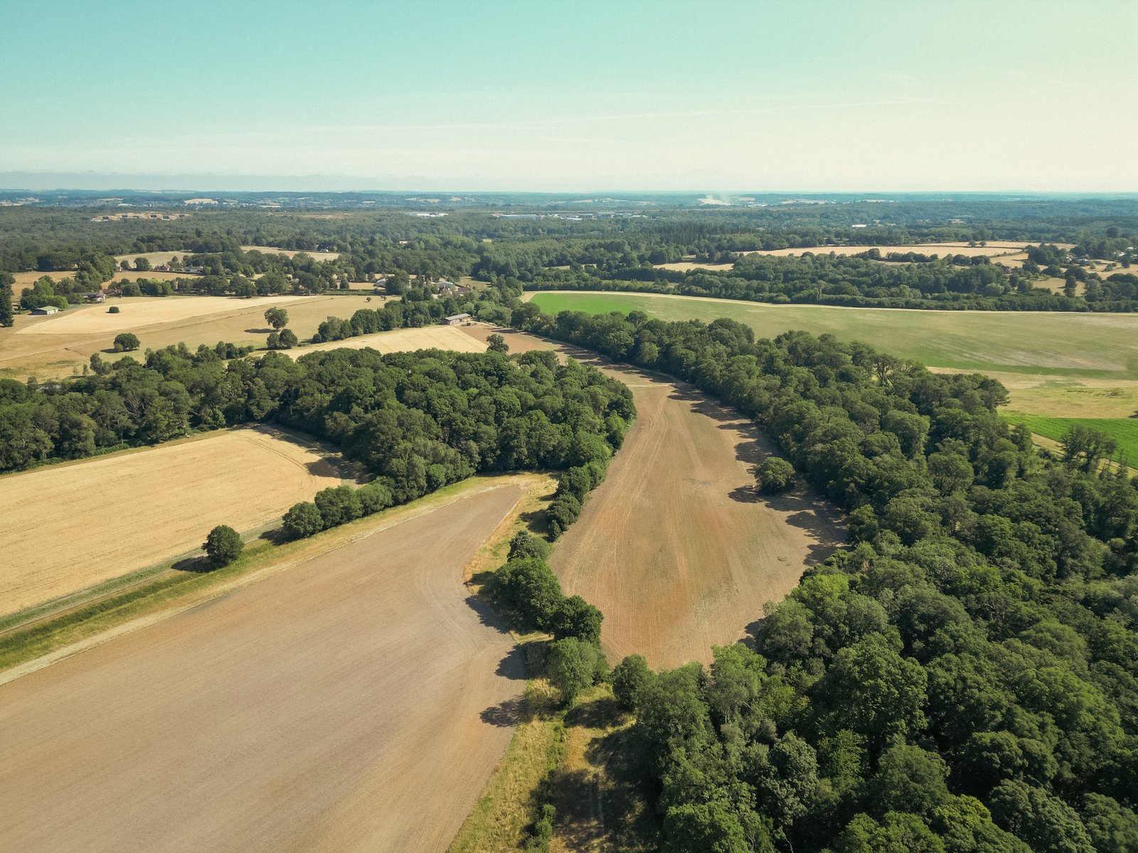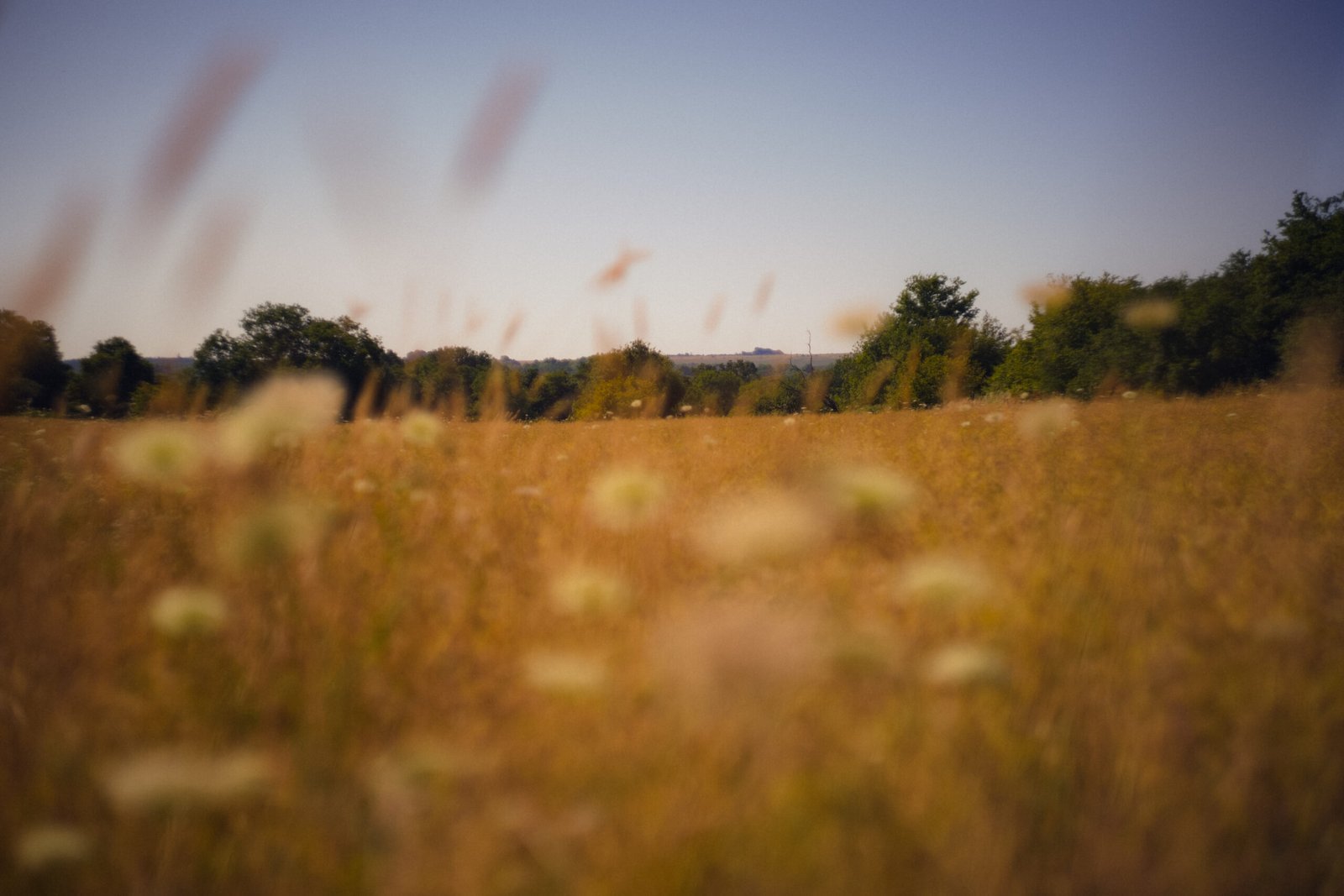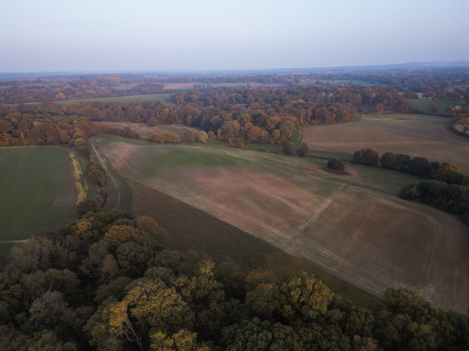 The site of Cowslip’s warren in July 2025, positioned in the treeline, just below the solitary tree that is to the right of centre. Dovey’s Copse is left, out of shot.